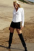 Well, you all rave about her, so her she is again, the lovely Jo May. Pictured in standard beachwear - thigh length boots, obscenely short black skirt, white shirt with black underwear. Jo's first outdoor wet shoot and one that certainly made the other people on the beach sit up and take notice. (71 photos)