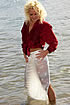 New girl Leah gets her debut in the sea! Wearing a red shirt and an ankle length white skirt, she embarks on the first of what we hope will be many wet adventures. The skirt goes wonderfully see through and clingy - revealing Leah's stockings, suspenders and panties in all their glory. (56 photos)