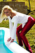 What better way to spend a hot, lazy, Sunday afternoon than cooling off and having some fun in a pool full of cool water. Jo May thinks so too - so here she is having a fantastic time soaking her tight red pants and white top. If like to see a girl really having a fun time whilst getting wet - then look no further than here. (109 photos)