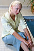Photoset 105 - Nikki Wearing a mid-length blue skirt and yellow blouse (no bra) Nikki tries out the pool. Lots of shots of her long blonde, wet hair in this photoshoot. Near the end, she removes the skirt to reveal her wet, white panties and hold-ups. (115 photos) >> Download this photoset at the StyxTake2 PPV photo site |
