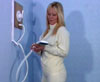 Lovely redhead Suzanne goes into the shower wearing a casual black skirt suit and white blouse (no bra). This is Sue's movie debut and she looks great - the black suit looks pretty good too - ooooh that shine! (11 minutes)