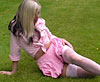 Naughty Natalie is back! Another girl who always starts the day so neat and tidy but usually ends up wet or messed. Wearing a tiny pink micro mini and matching top, plus white panties (you'll see lots of them) she plays in the rain and wet grass before larking about in the pool. (9.5 minutes)
