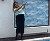 Well you've seen new girl, Christine, out in the rain, now she makes a splash in the pool. Wearing a long blue evening dress, shawl and heels, Christine has a lovely expression of innocent fun on her face the whole time she soaks her slinky outfit. Being tall and slim, Christine really suits this dress...but it looks just so much better when wet! Some really good wet hair shots in this movie. (12 minutes)
