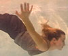 Naomi watched some of the other girls play on the rope swing and decided she'd have a go too. Wearing a mid-length pinstripe skirt, dark seamed stockings and a short-sleeved light blue blouse - she first plays in the shallows and then leaps into the pool. (8.5 minutes)