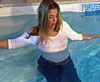 It was only supposed to be a bit of fun - could she float around on that little raft and not get wet? After all, June was dressed for an evening out - in a tight black blouse over a short burgundy dress. She had no intention of getting her clothes wet. Or did she? Anyway, there's no chance she's going to stay dry is there?? (10.5 minutes)