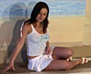 Candy is wearing the shortest flared white skirt that you could imagine, plus a thin white vest top and no bra. We bet you won't be surprised how clinging and see-through that outfit goes when she gets into the pool on her first video shoot for the site. (7 minutes)