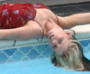 Lana - as you've not seen her before. Not only serene and graceful as usual, but also full of fun. She swings over the pool on a rope and repeatedly falls in, dressed in a white blouse and long red skirt. Extreme close ups and underwater shots in this video too. (9 minutes)
