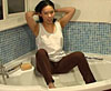 A welcome return of Tammy, who we haven't seen for a while, but you will be seeing a LOT of in the future. White jeans and T, plus denim boots get a good soaking in the pool, add to that the cutest smile you're likely to see in any pool. Well, how can you resist? (7.5 minutes)