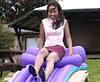 Our delightful smiling girl from Laos is back. This time we get her to play on our outdoor slide. And we put a nice cool pool of water at the end of it, so that she soaks her short purple skirt and sleeveless pink oriental top. She makes sure she's soaked by tipping buckets of water over her own head and black hair. (10.5 minutes)